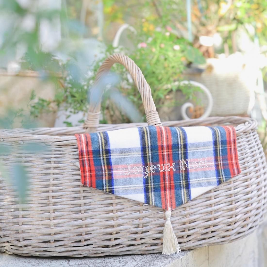 タータンワンハンドルバスケット・スタイ・クロスステッチ刺繍