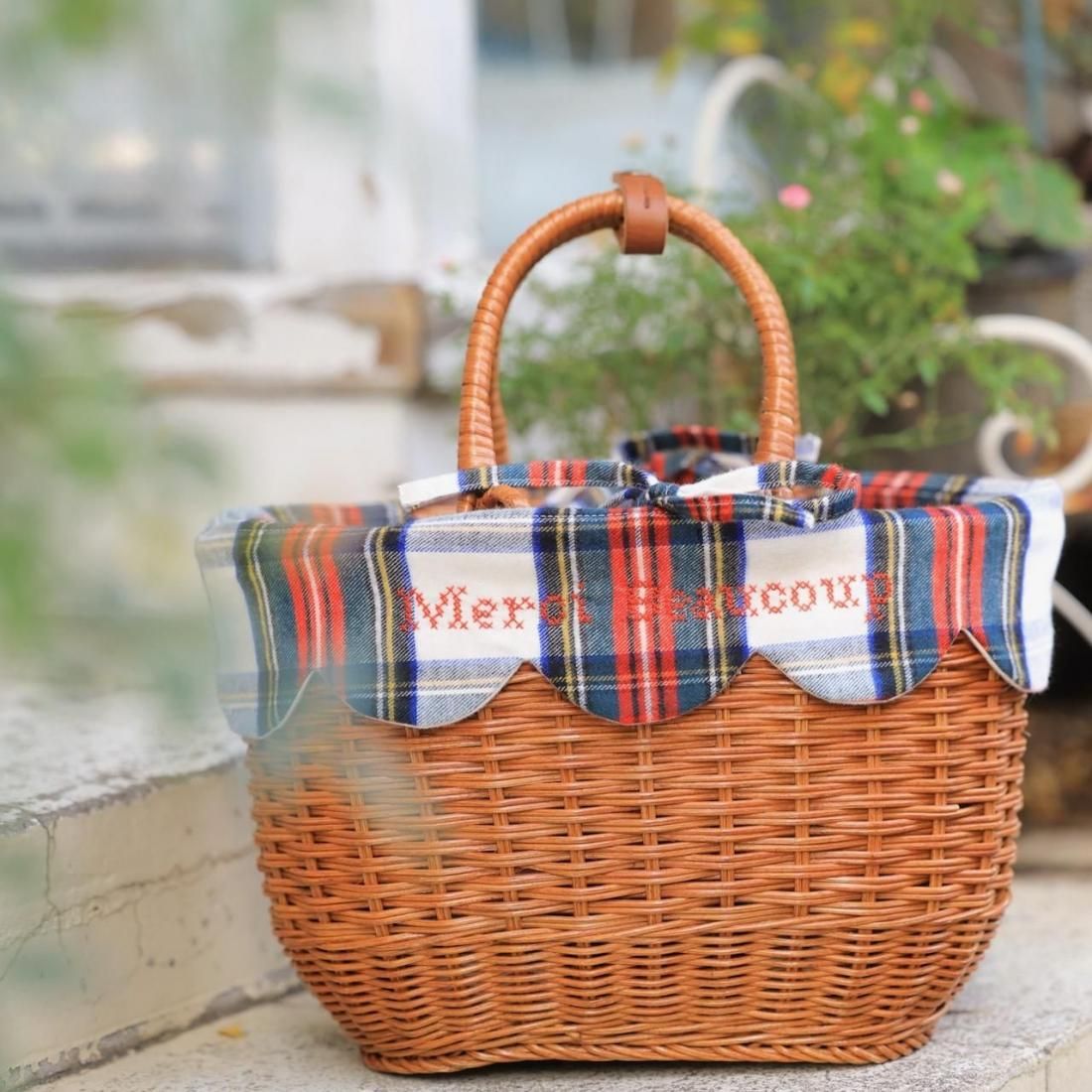 タータンワンハンドルバスケット・スタイ・クロスステッチ刺繍